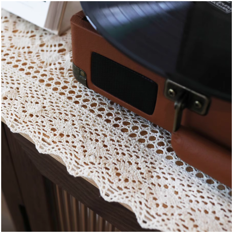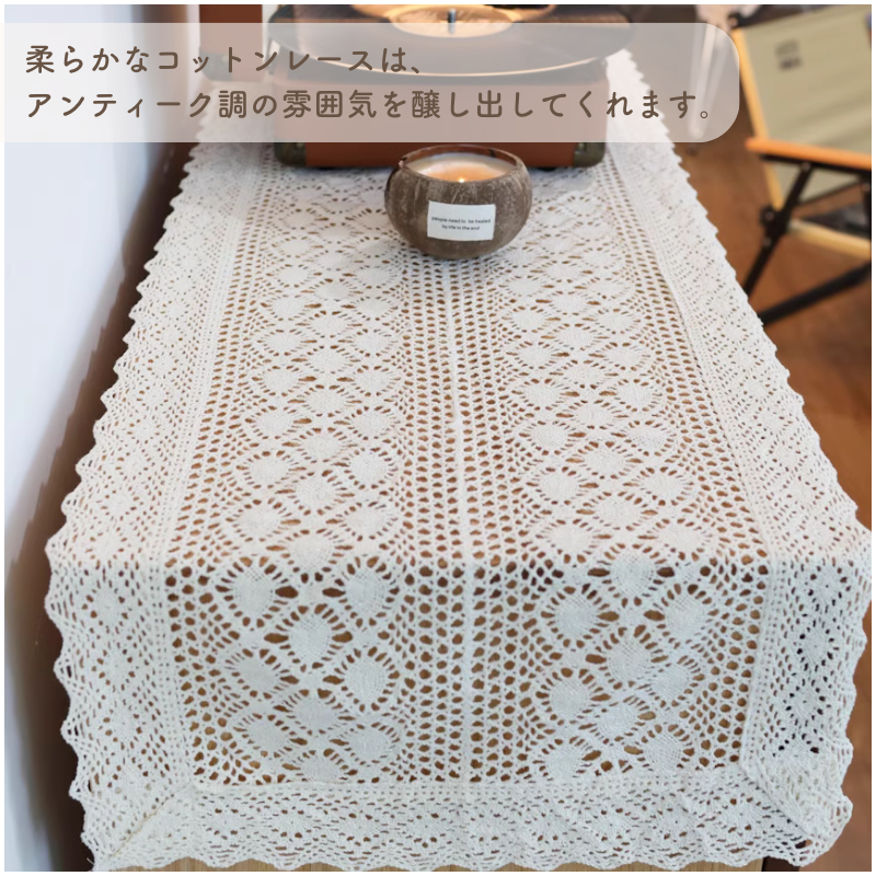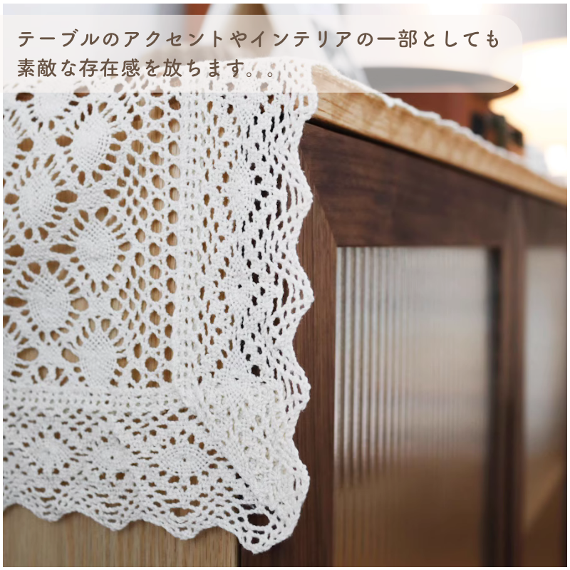 ★ かわいい編みレース柔らかくて手触りの優しい綿の糸一本一本で編み込まれたテーブルランナー 、ちょっとしたスペースに置くことで、おしゃれでアンティークな雰囲気へ。