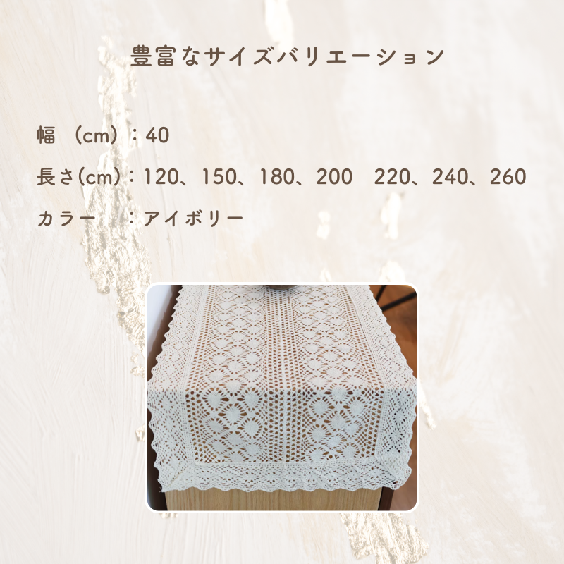 ナチュラルレース テーブルランナー 自然をモチーフした上品な花柄