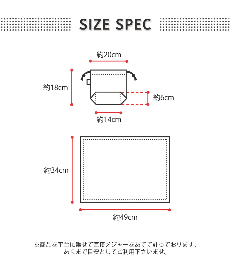 ※商品を平台に乗せて直接メジャーをあてて計っております。あくまで目安としてご利用下さいませ。