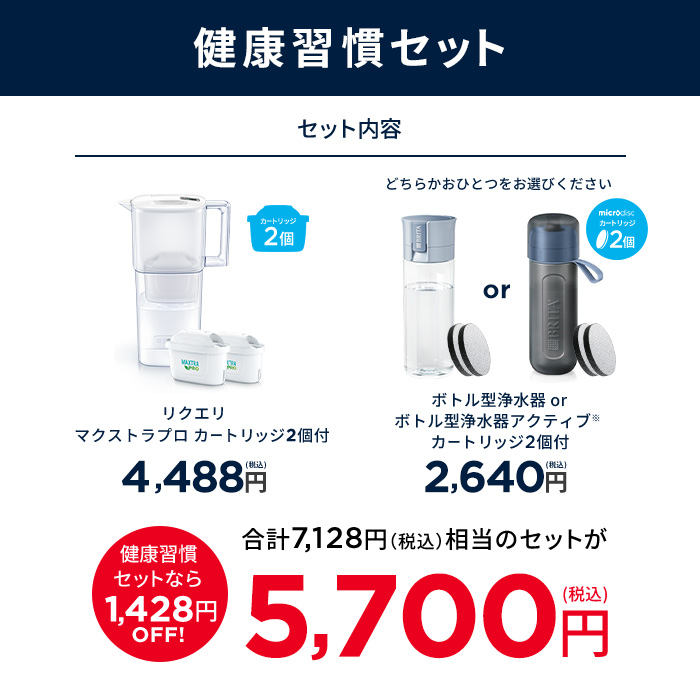 \ ポイント10% 4月12日23:59まで / 【健康習慣セット】 ポット型浄水器 リクエリ ろ過水容量 +1.15L 選べるボトル型浄水器 カートリッジ2個入り