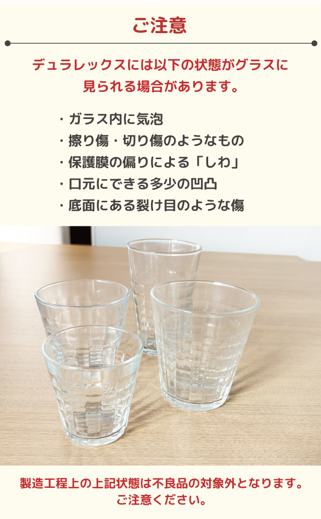 ※ガラス同士や硬いものとぶつけないようご注意ください。