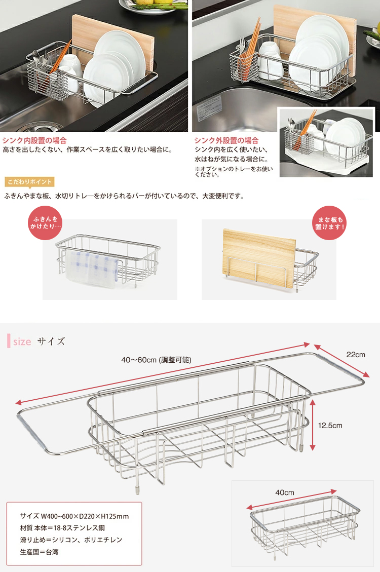 シンク内もシンク外も使える、使い勝手のよい水切りかご
