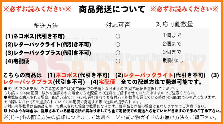 ※代引き決済の場合は自動的に「宅配便」での出荷となります(ネコポス、レターパック不可)。