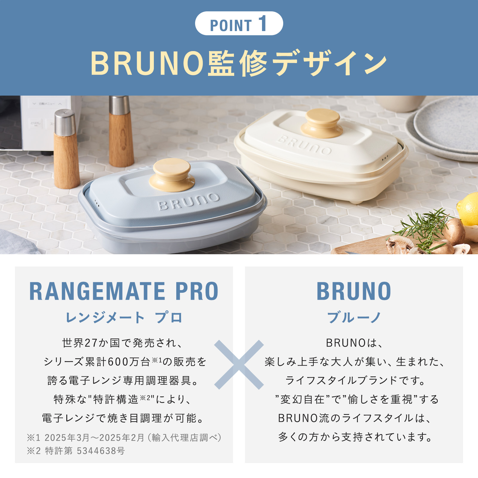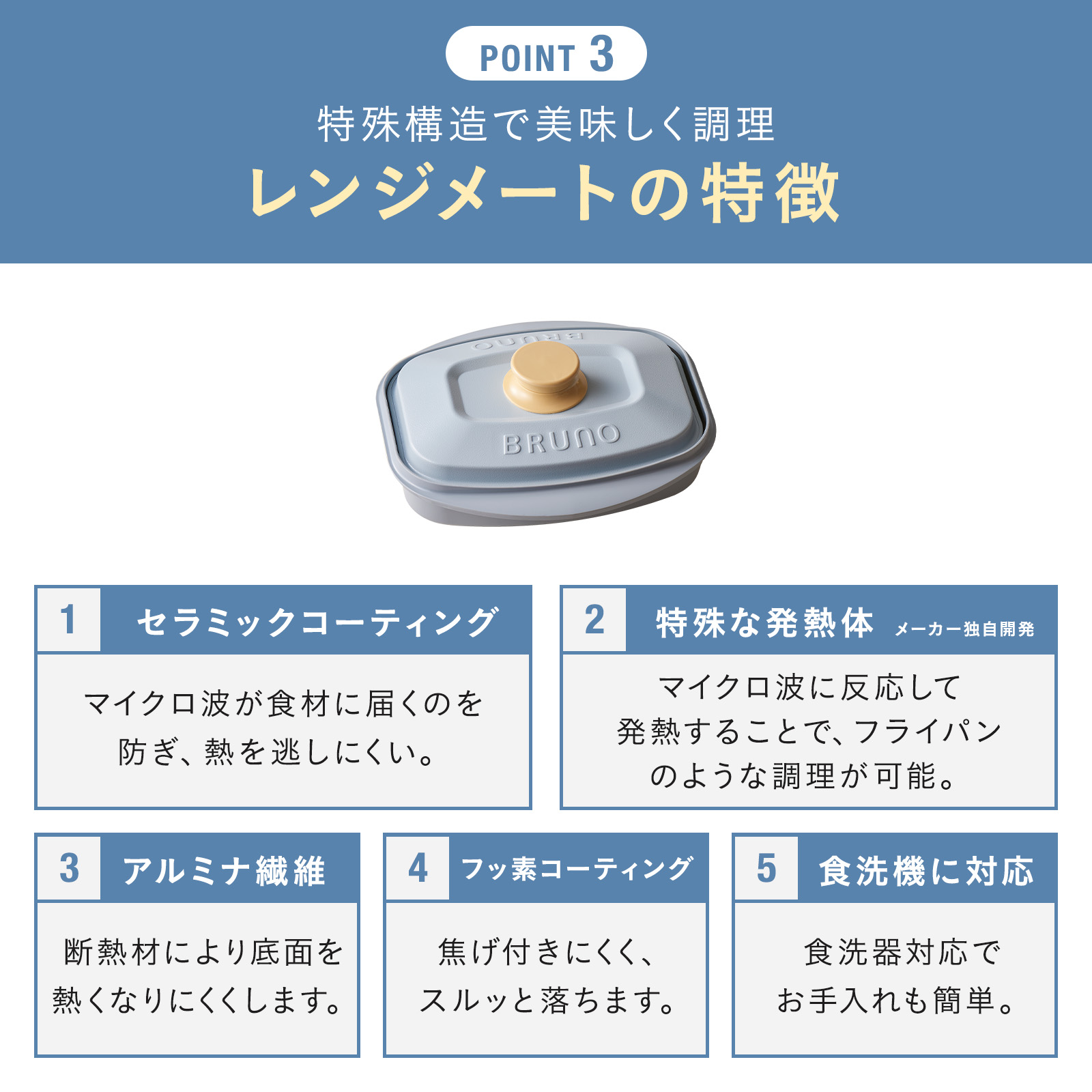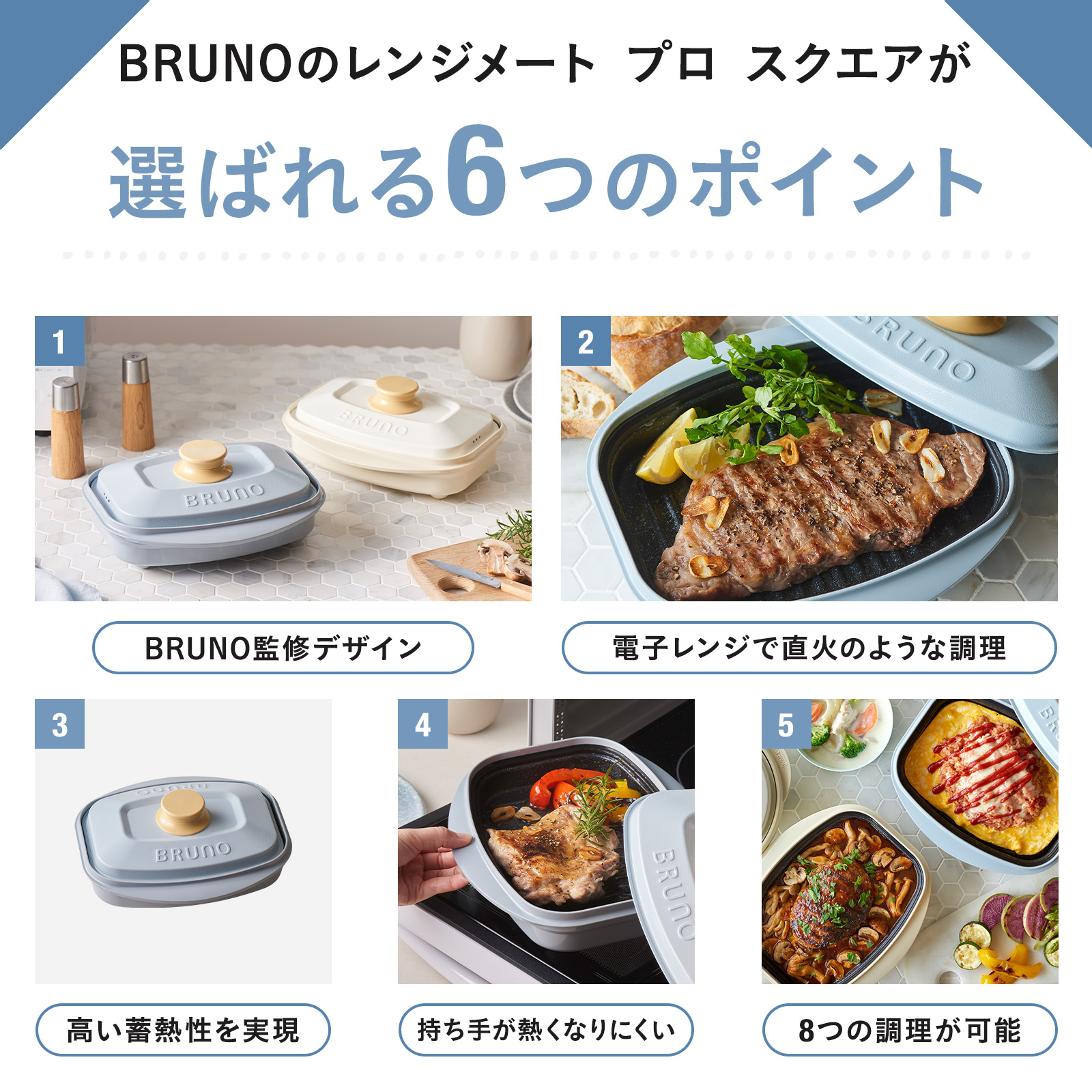 レンジメートプロ スクエア by BRUNO ブルーノ レンジメイト 電子レンジ 調理 電子レンジ調理 焼き魚 グリル料理 コラボ スクエア 食洗器対応