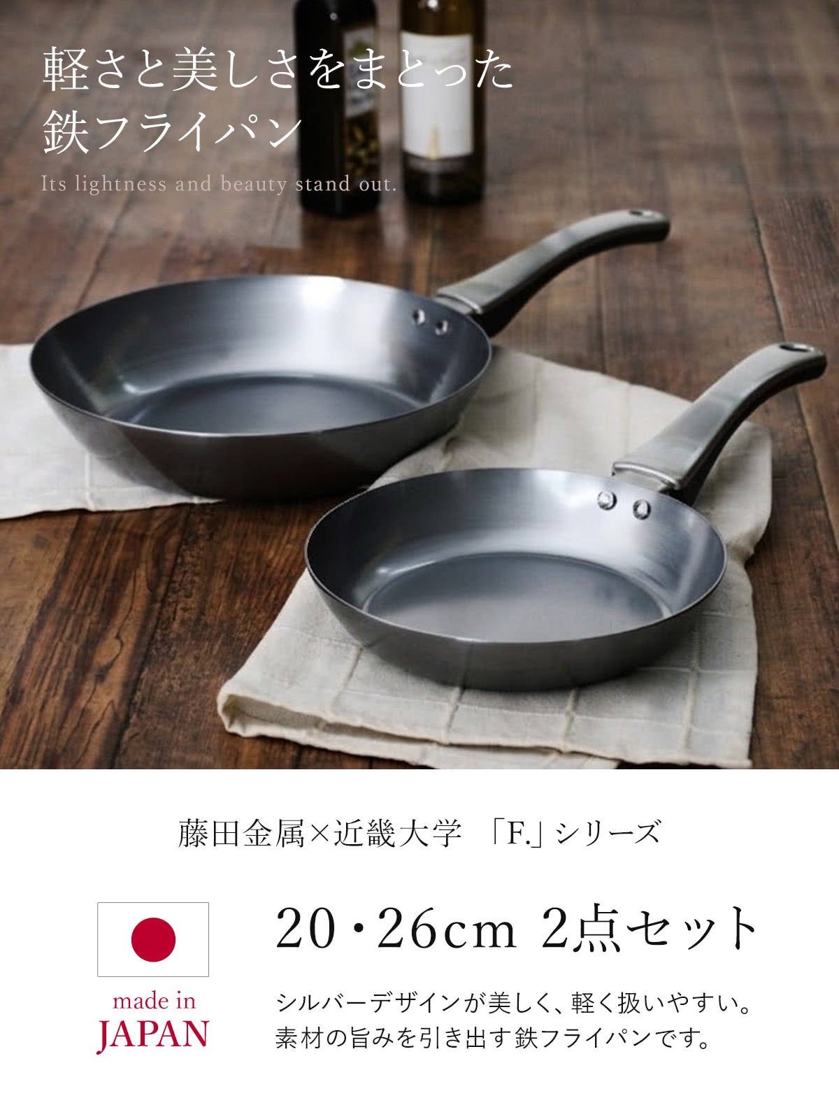 鉄フライパン 2点セット 20cm 26cm IH対応 「F.」 藤田金属×近畿大学 日本製 ( ガス火対応 鉄製フライパン セット 炒め鍋 フライパン )