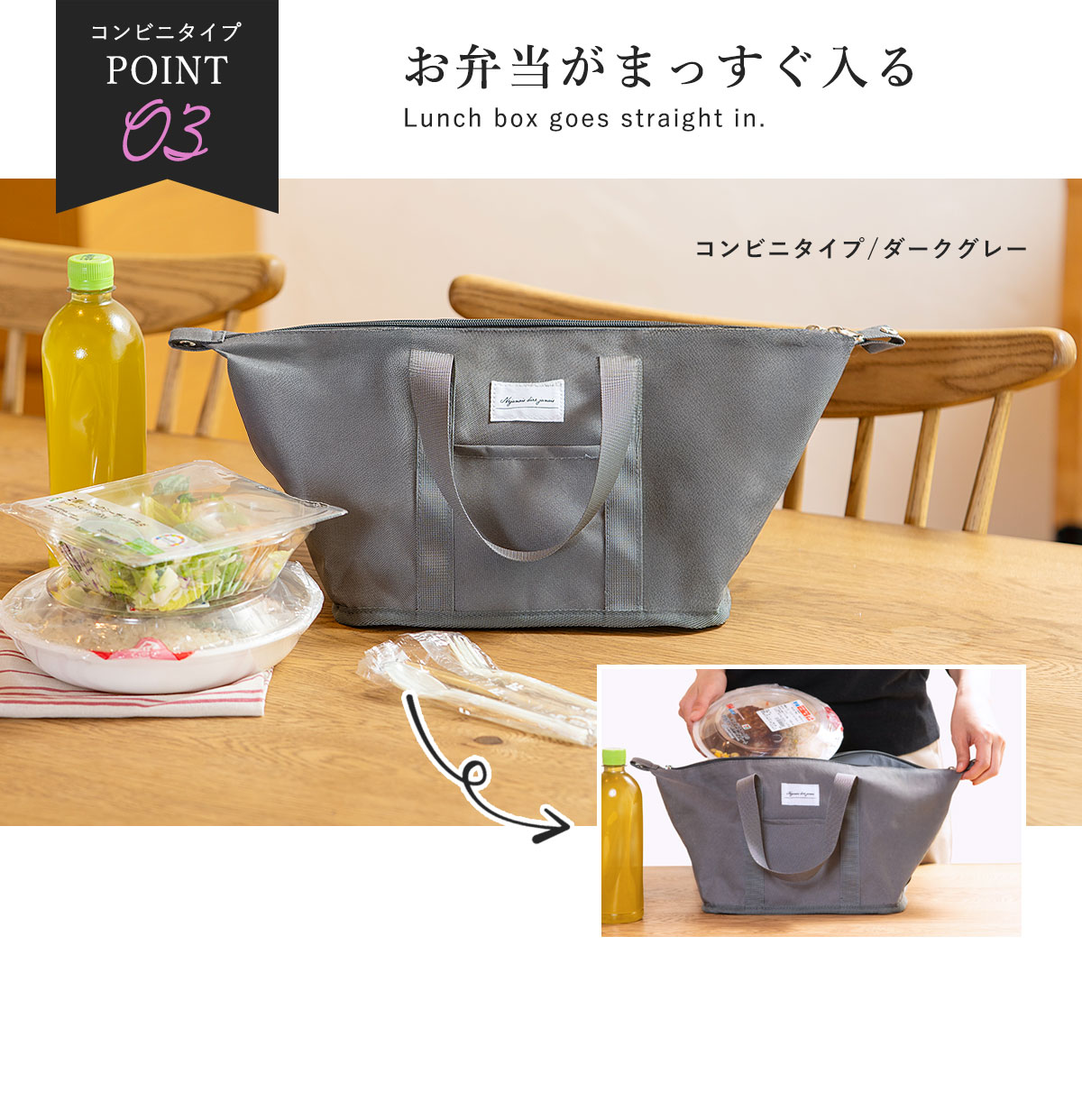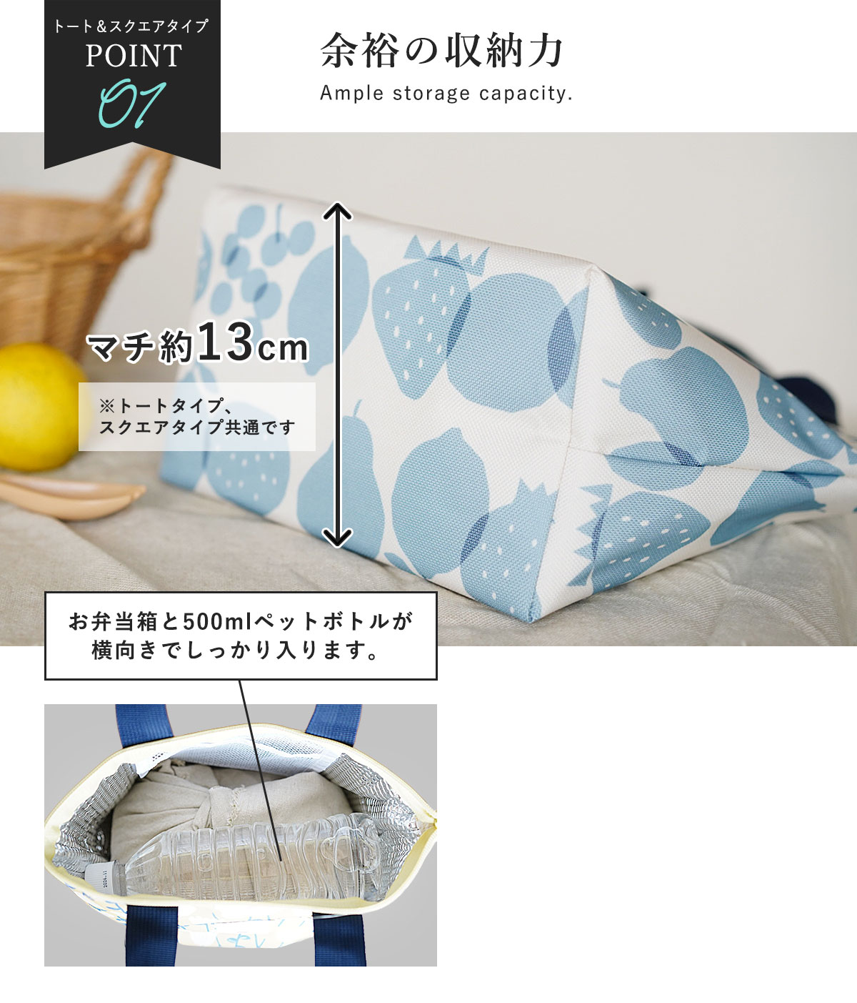 中は保冷保温に優れた断熱素材でお弁当入れにピッタリ。