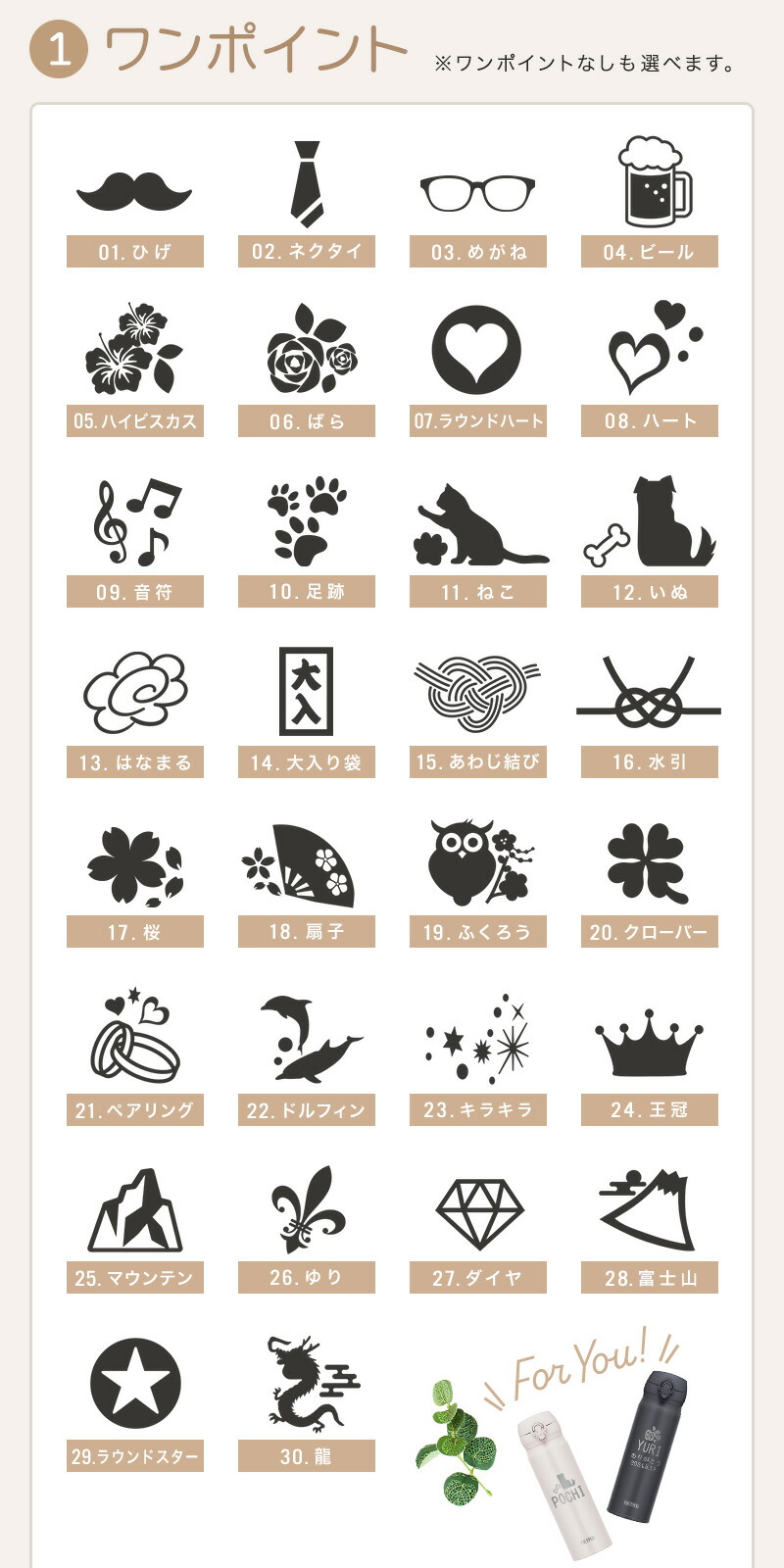 当店オリジナルワンポイントを30種類ご準備