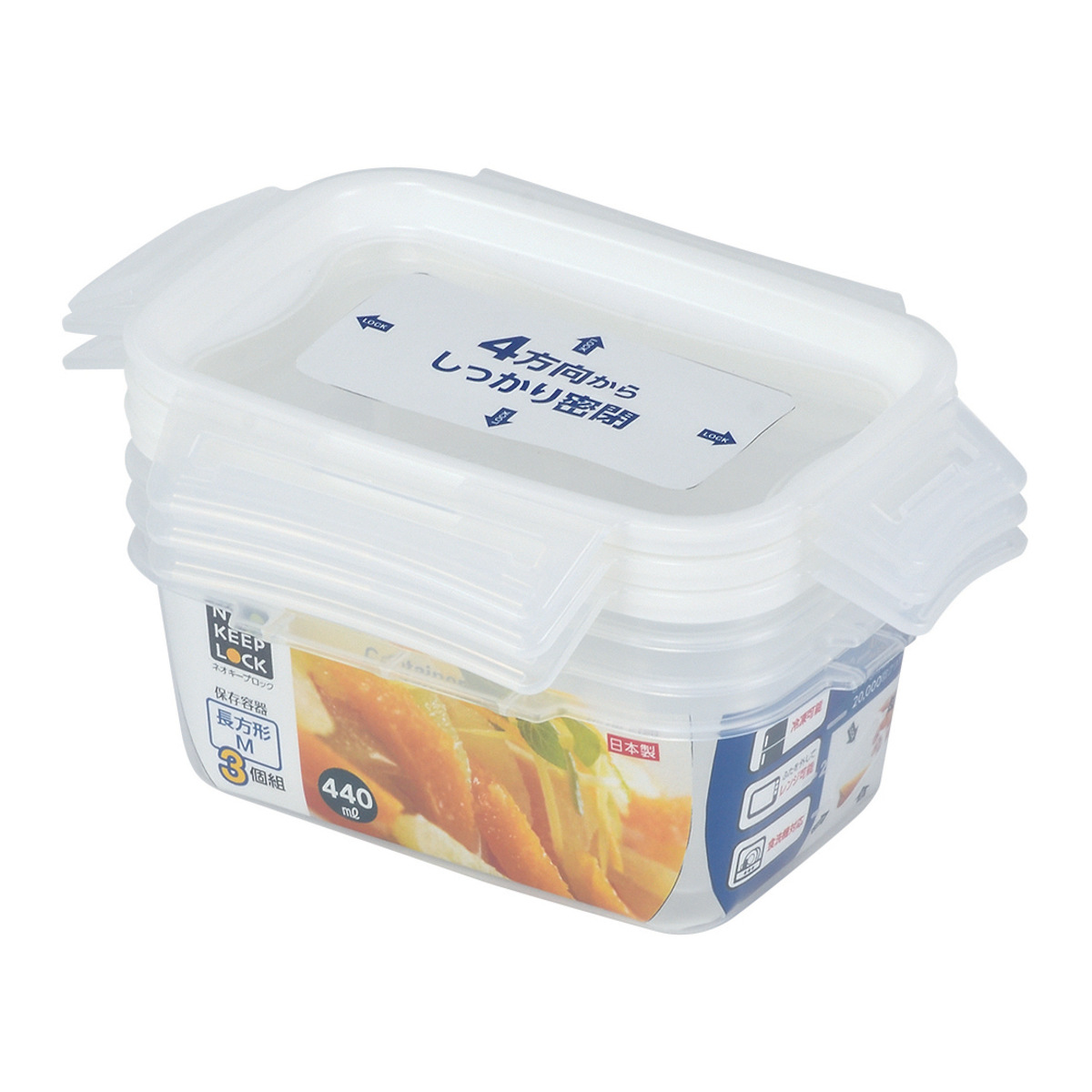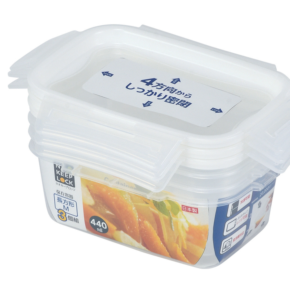 ●毎日使える長方形の保存容器 容量440mlサイズ 3個入です。