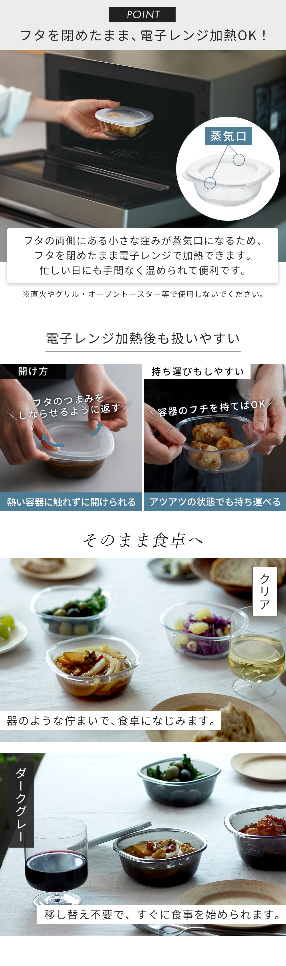 ・電子レンジでの加熱後は、やけどに注意してください。
