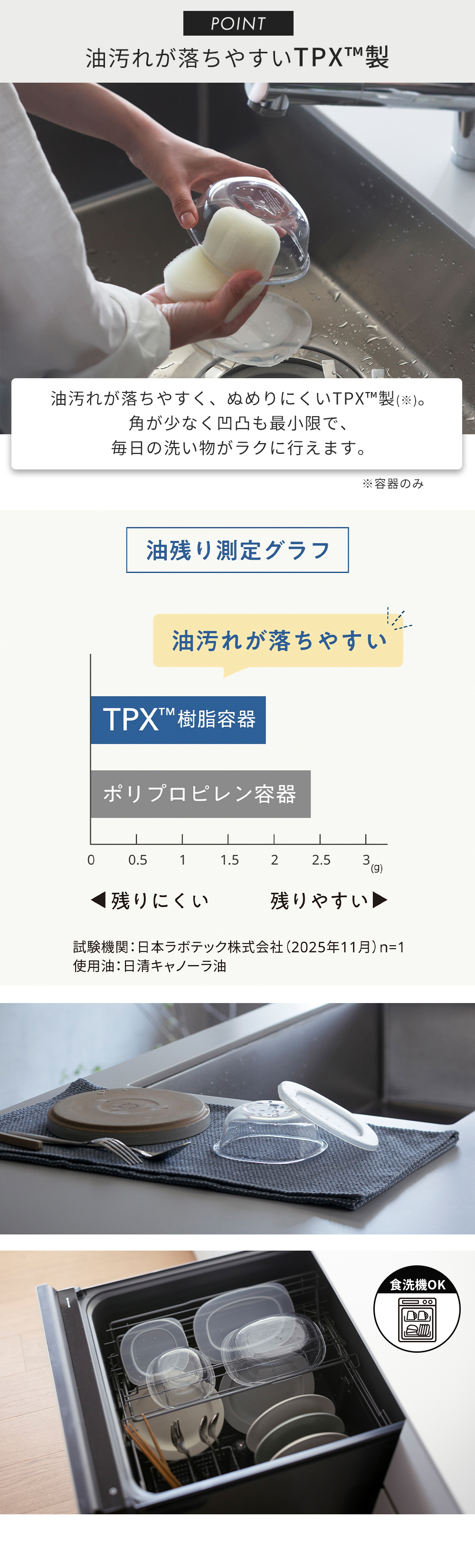 ・食材からの(または食材への)におい移りが気になる場合は薄めた台所用漂白剤に浸けた後、お湯で洗い流してください。
