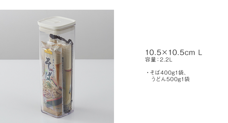 Lサイズは、主にパスタなどの乾麺の保存向き。