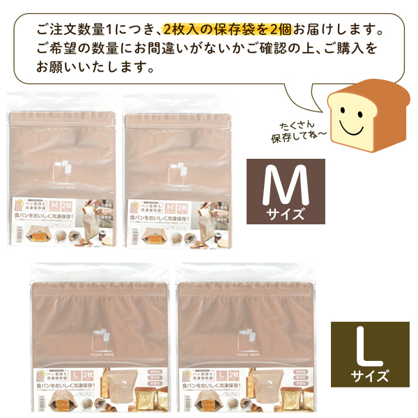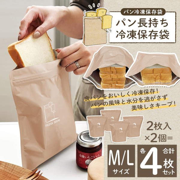 食パン 冷凍保存袋 2袋セット M/Lサイズ 各4枚 繰り返し使える 鮮度長持ち 密封 臭い移りなし 乾燥防ぐ パン袋 送料無料 1M◇ パン冷凍保存袋