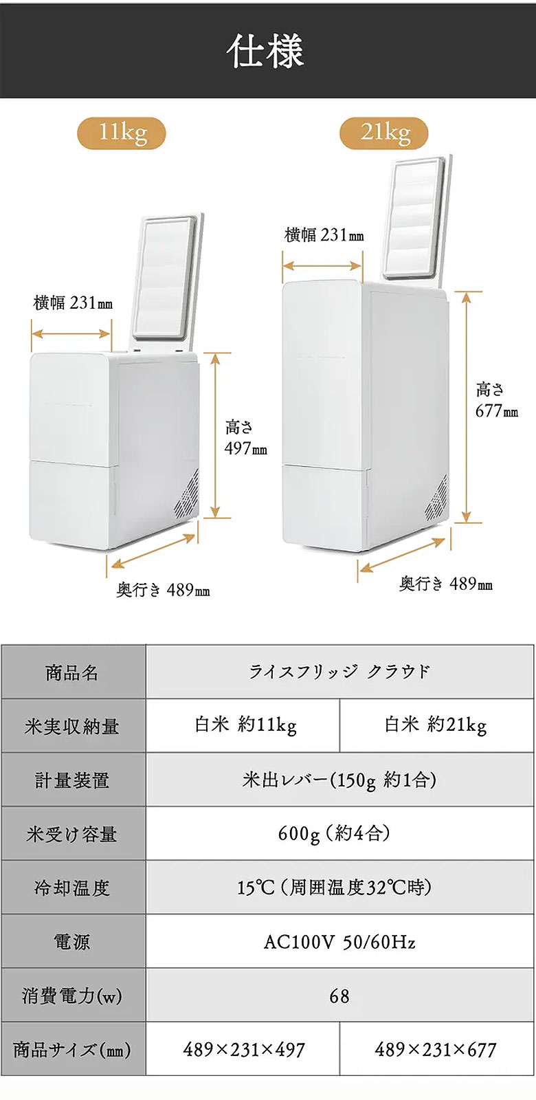3400円OFFクーポン利用可 豪華特典付き ライスフリッジ クラウド 白米21kg お米専用冷蔵庫 保冷米びつ 保冷米櫃 冷蔵米びつ 冷蔵米櫃 鮮度 新鮮 お米