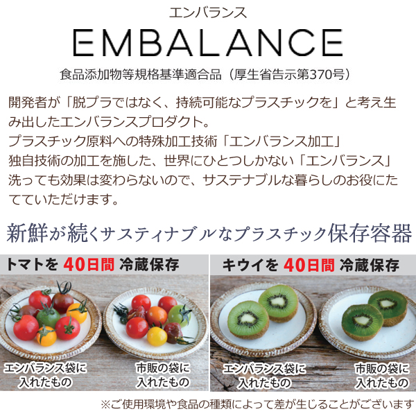 本体:ポリプロピレン(エンバランス加工)、フタ:ポリエチレン(エンバランス加工)
