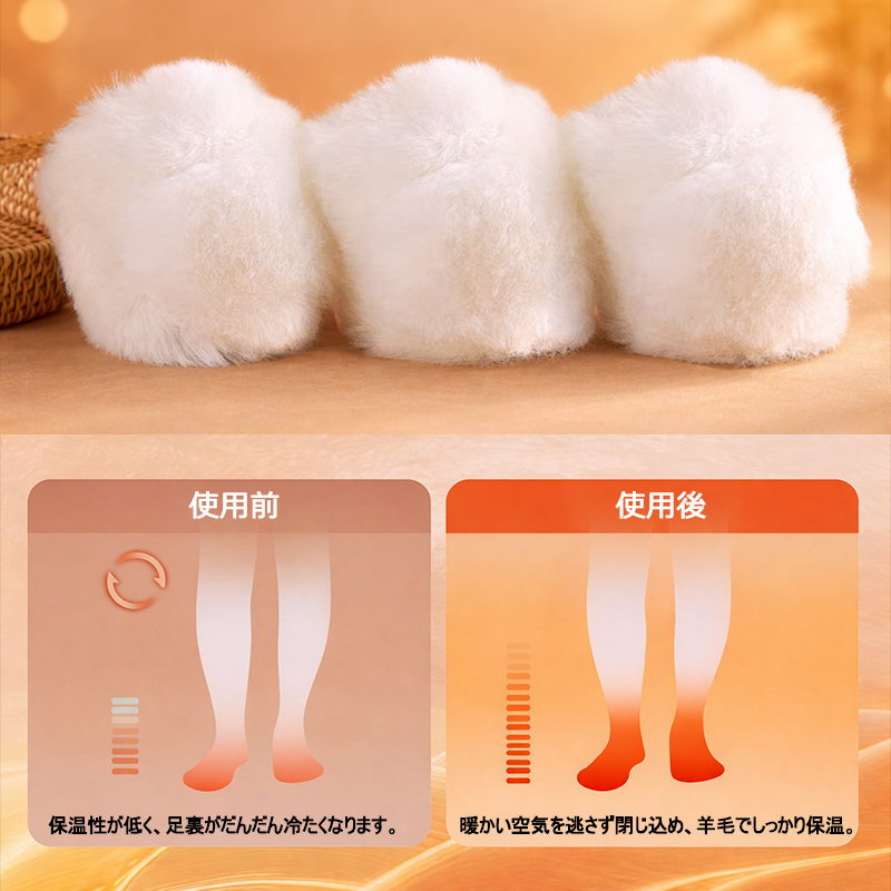 〇密度しっかりのシープスキンとフェルトソールを張り合わせた構造になっており、保暖・吸湿、型崩れ防止に優れます。
