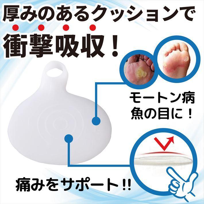 足裏のウオノメ・イボ・マメの痛みにお悩みの方、モートン病や足底筋膜炎でお悩みの方に。柔らかいシリコンパッドで足裏の痛みを軽減します。