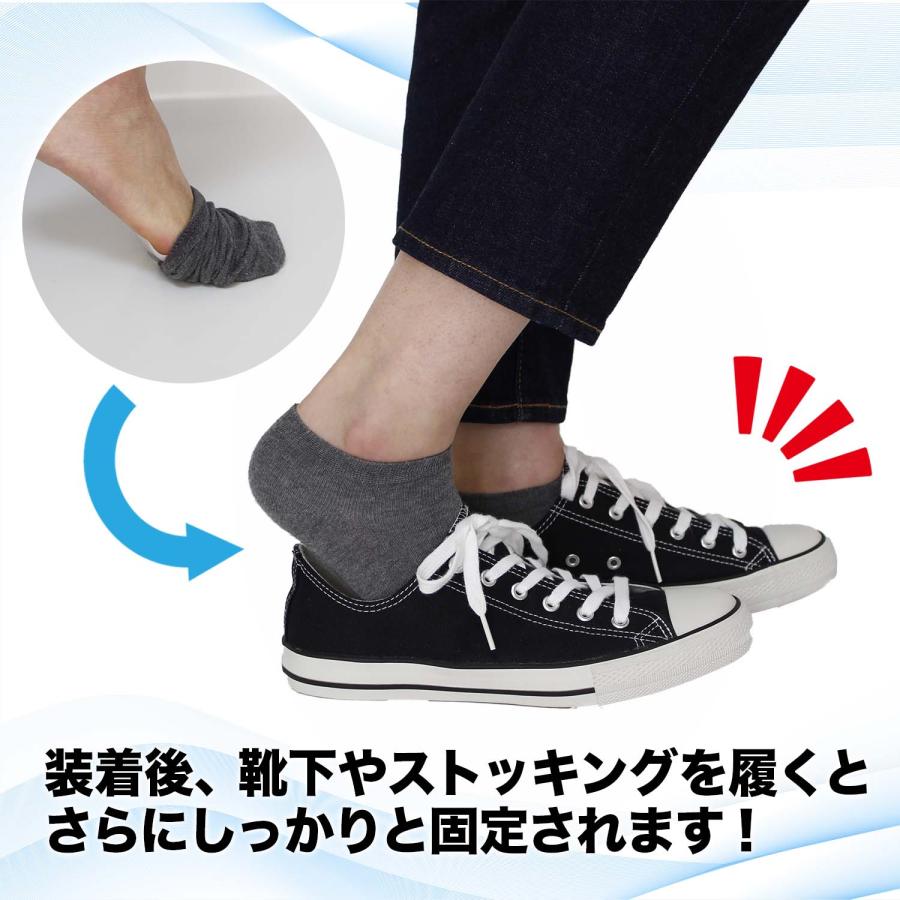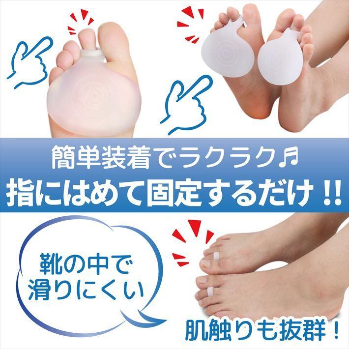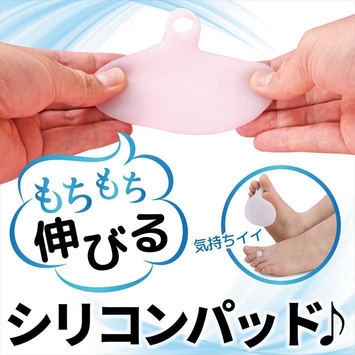 装着はとっても簡単ラクラク♪足の第二指(人差し指)1本にはめて、足裏へ合わせるだけです。靴下やストッキングを上からはけば、さらにピッタリフィット。指に固定してあるので靴の中で滑りにくく、横ズレしにくいシリコンパッドです。肌触りも滑らかで抜群!柔らかで伸縮性抜群だから着用時に違和感がありません。