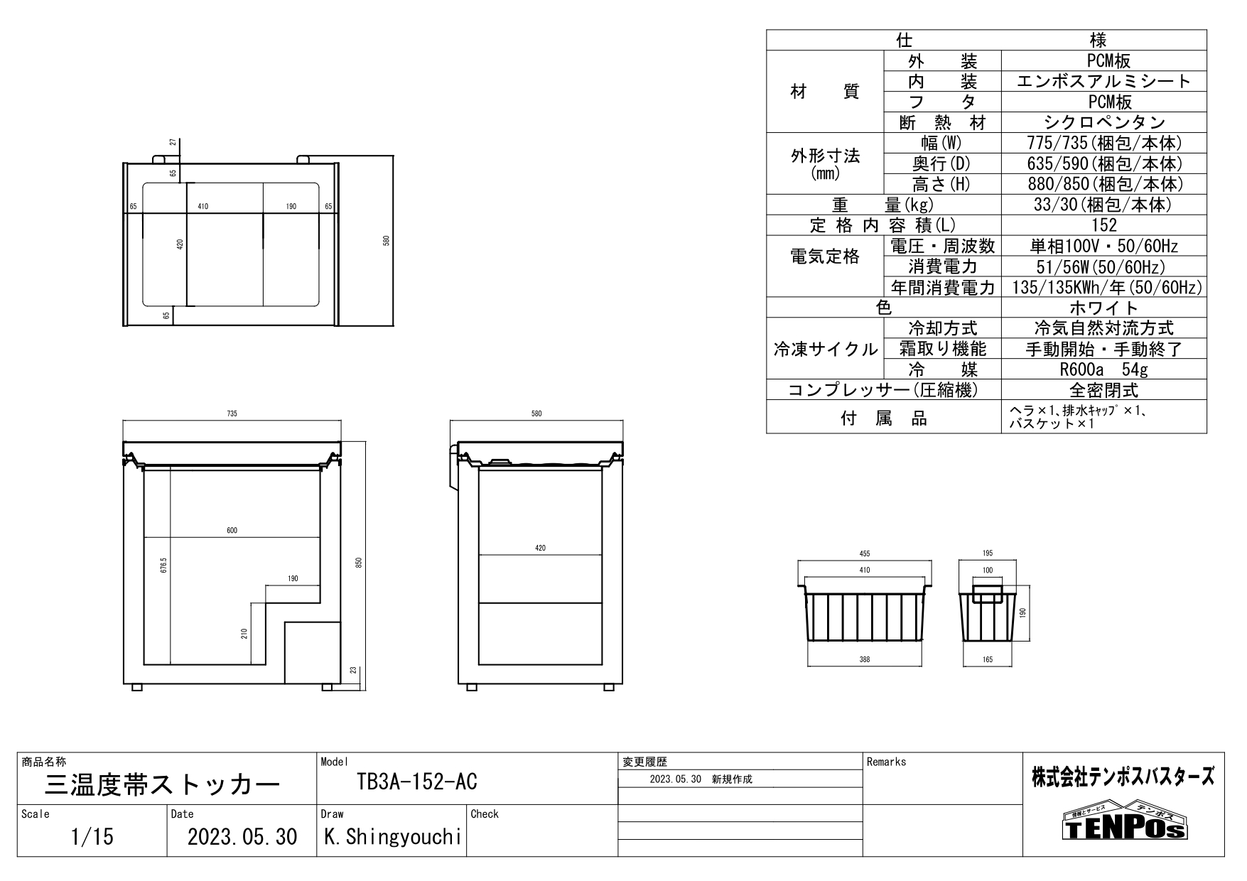 付属品:霜取ヘラ×1、バスケット×1、排水庫内キャップ×1