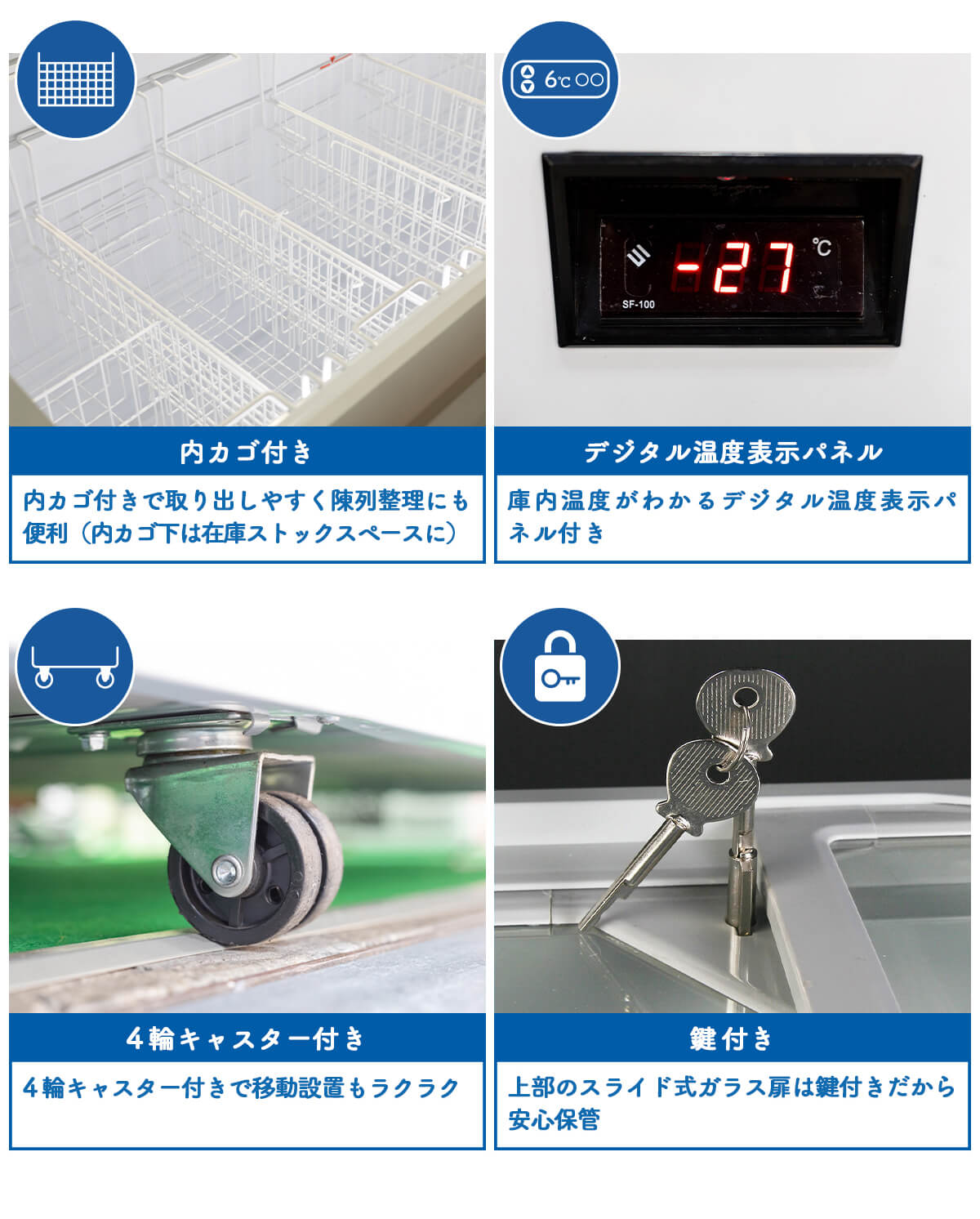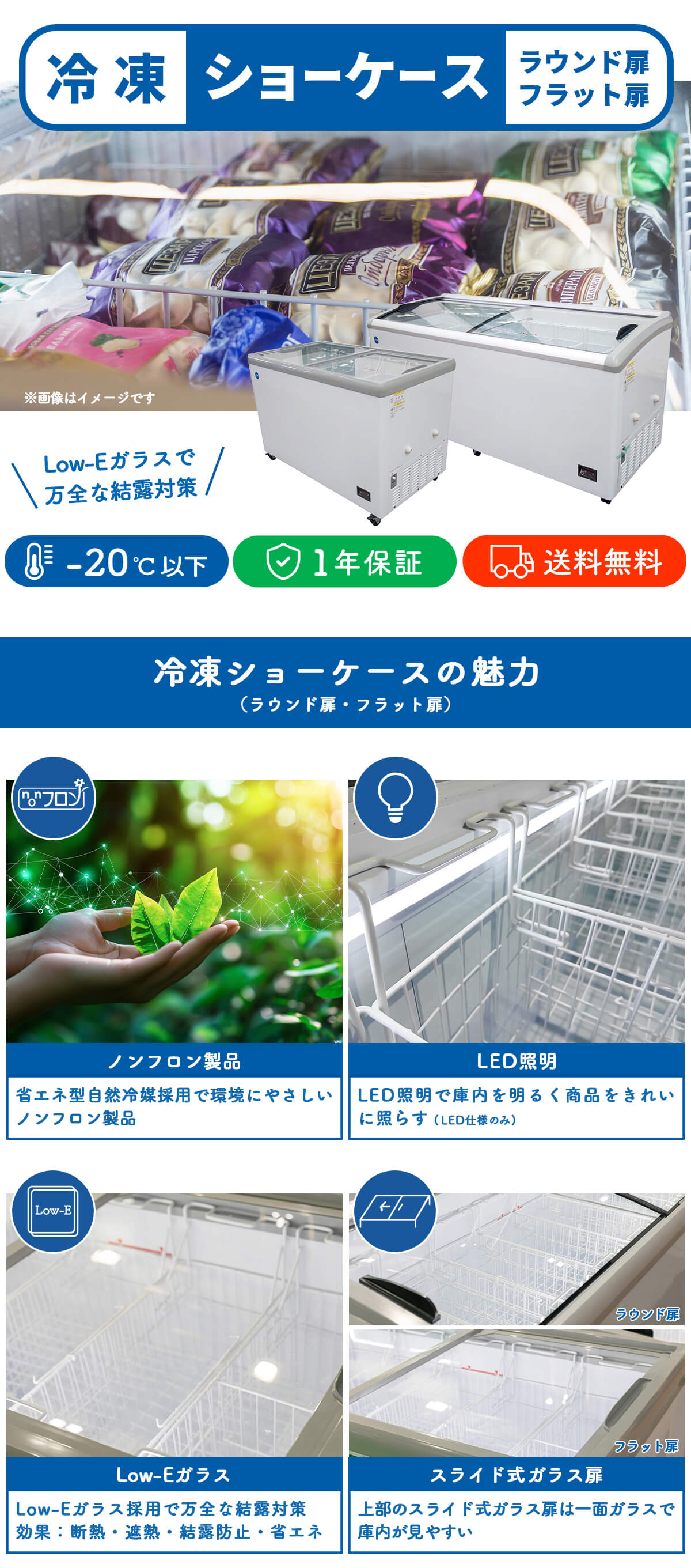 JCM 冷凍 ショーケース JCMCS-373FL フラット扉 LED照明 冷凍庫 保冷庫 横型 冷凍ストッカー スライドガラス 業務用 373L ノンフロン 結露対策