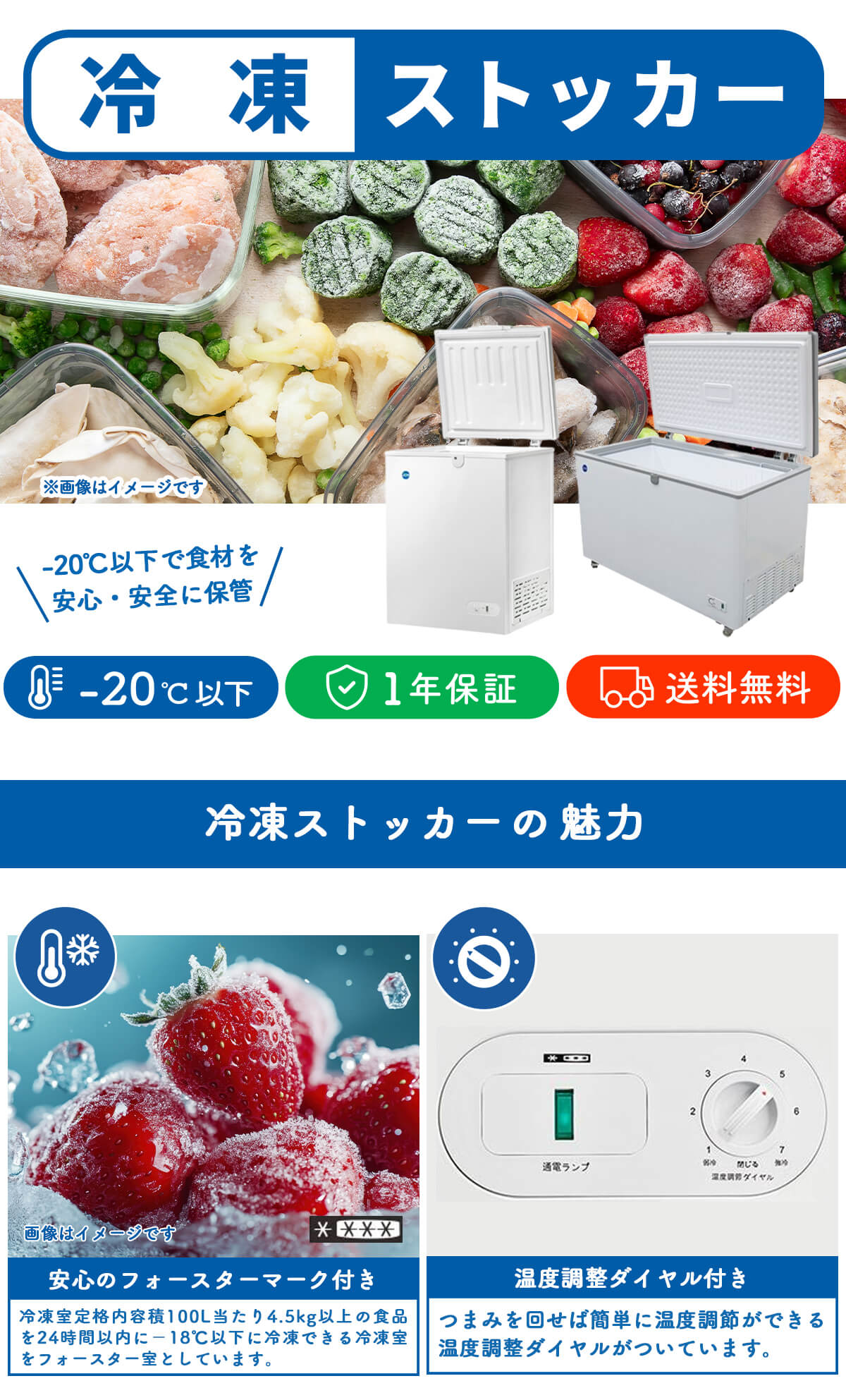 【設定温度範囲】−20℃以下(外気温30℃・無負荷平衝時直射日光受けず)
