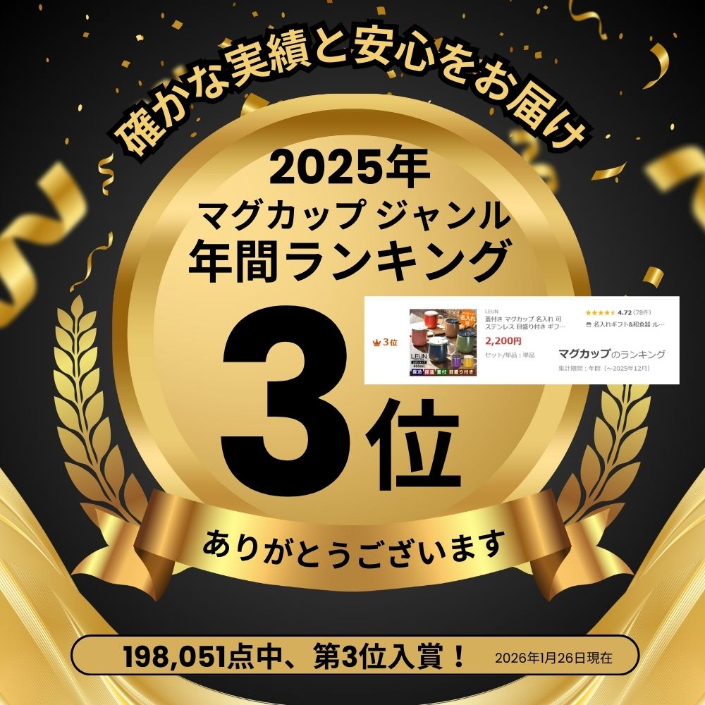 「LEUN」の真空断熱二重構造オリジナルマグは一年中使えるスグレモノ。自分用、家族用はもちろん、贈り物やプレゼントにも!「名入れ」彫刻を施せば、感動とサプライズも一緒に贈ることができます!誕生日、母の日、父の日、敬老の日、バレンタイン、ホワイトデー、結婚祝い、各種記念日など、あらゆるイベント、シーンに最適な贈り物としてお使いいただけます。