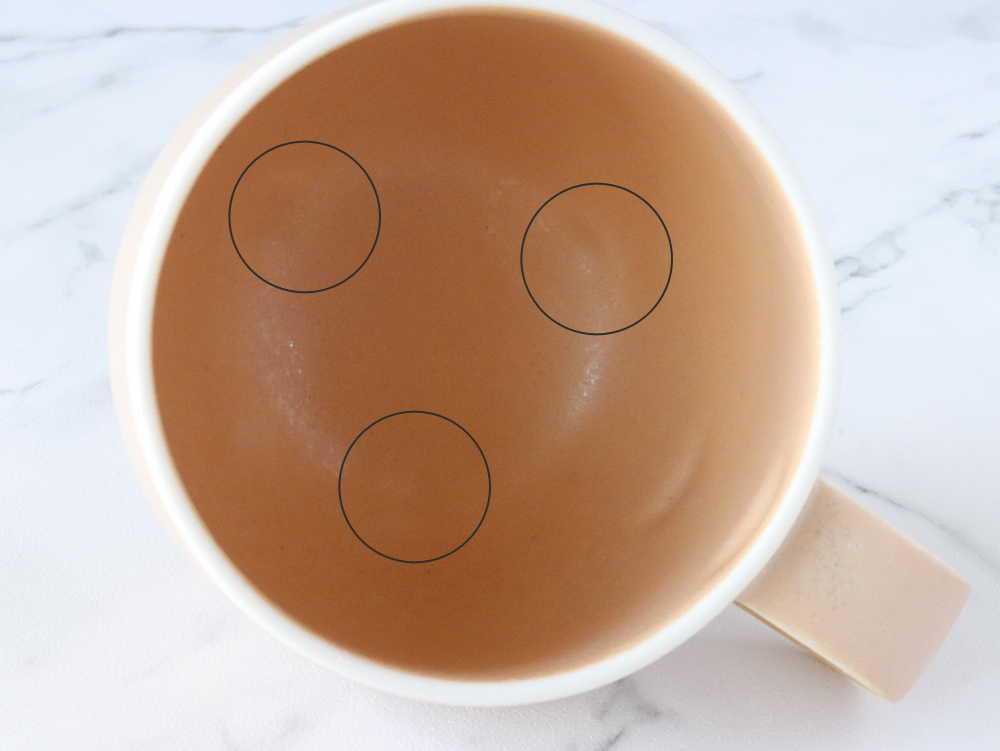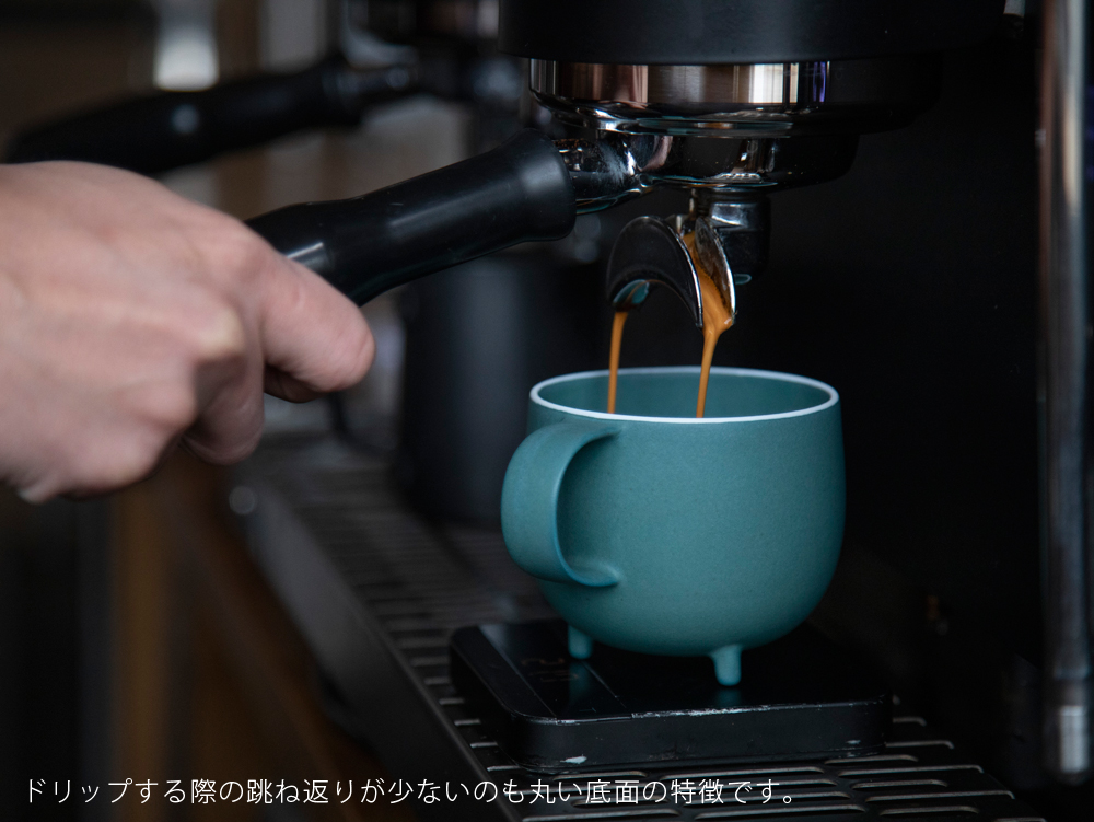 カップの底が立体的に丸くなっているため、ミルクを注ぐと、自然に柔らかく混ざり合うのでマドラーやスプーンでかき混ぜる必要がありません。