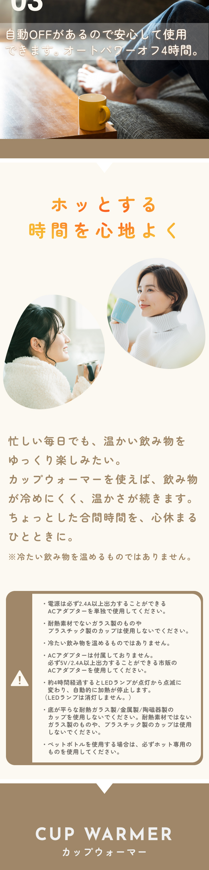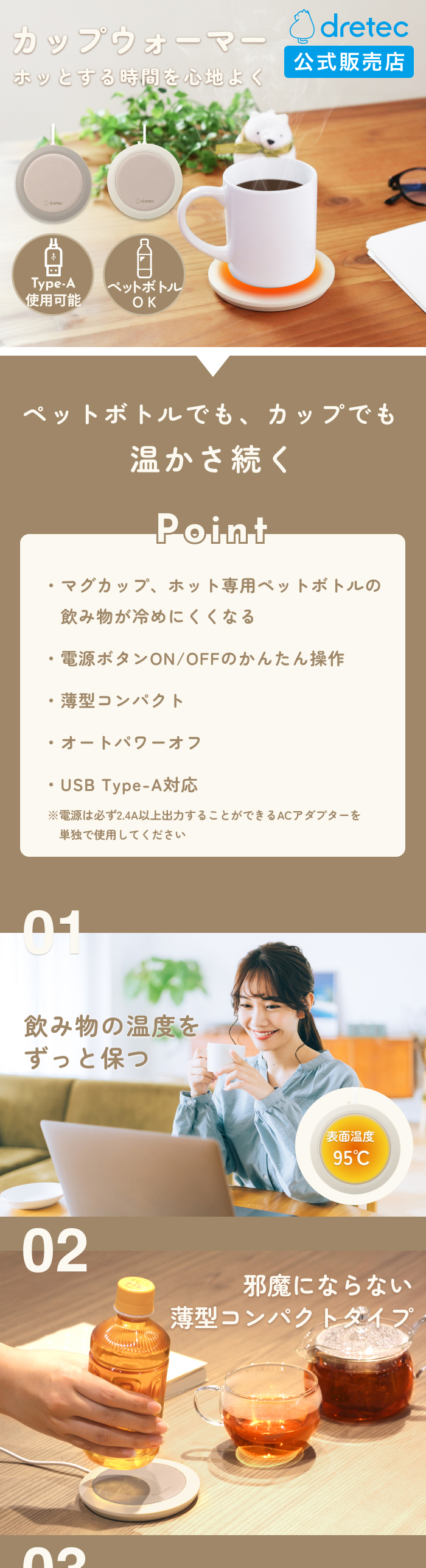 【ドリテック 公式】 カップウォーマー ペットボトルOK 保温 自動OFF USB マグカップ コンパクト オフィス テレワーク コーヒー お茶 くすみ かわいい